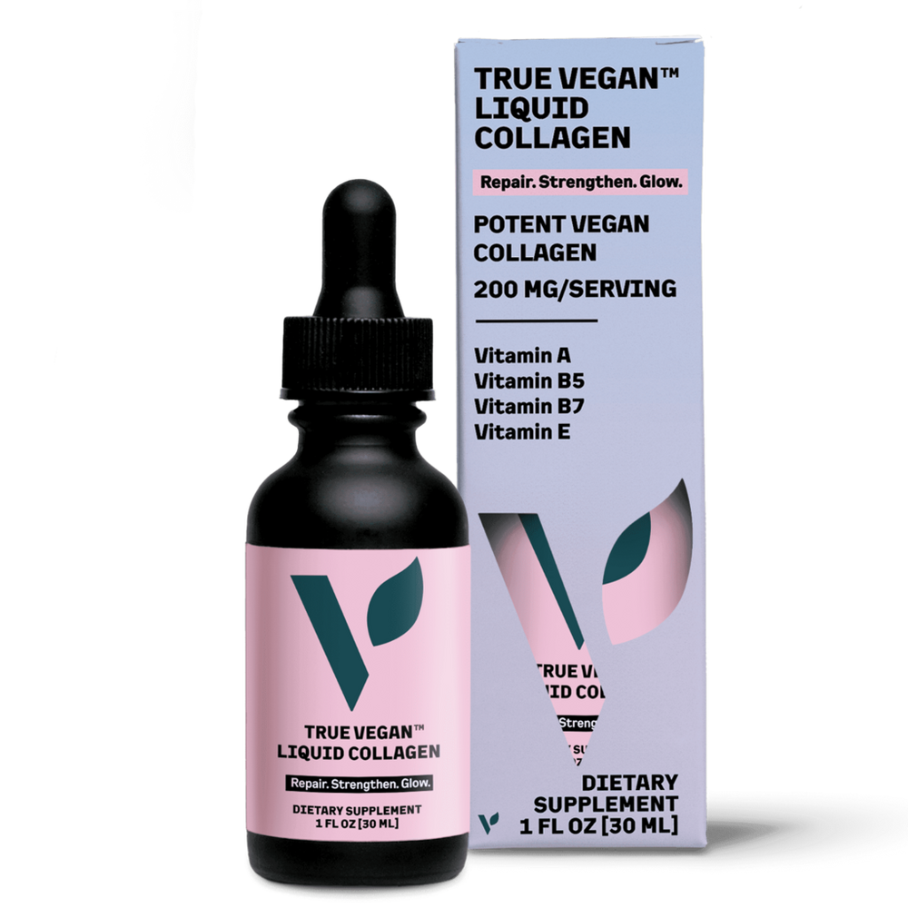 True Vegan Liquid Collagen. Benefits: Vegan Collagen Has Blossomed. Experience the power of plant-based beauty with our True Vegan Collagen line. Crafted with clinically tested vegan collagen sources, these products nourish from within delivering real results without animal products or artificial additives.. For those seeking convenience without compromise, our liquid collagen offers a fast-absorbing blend of both VC-H1 hibiscus extract and Collawise yeast-derived collagen, combined with a full spectrum of beauty-enhancing vitamins including A, E, B5, and Biotin. Just a quick dropperful provides comprehensive support for your daily glowno mixing required.. These formulas are free from animal byproducts, synthetics, or fillers, and are designed to integrate seamlessly into your customers wellness routineswhether stirred into a drink, taken straight, or tossed into a travel bag on the go.. Features: Real Plant-Based Collagen: Amino profile mirrors animal collagen for true structural support.. Skin Firmness & Elasticity: Helps maintain a lifted, youthful appearance.. Radiant Glow: Antioxidant-rich formula supports an even, luminous complexion.. Stronger Hair & Nails: Nutrient complex helps reinforce keratin structures.. 200MG Potent Vegan Collagen. Vitamin A. Vitamin B5. Vitamin B7. Vitamin E. Key Ingredients: At Veggimins, we believe that wellness should feel goodnaturally. Thats why we craft thoughtfully formulated, plant-based supplements that support beauty, balance, and vitality from the inside out.. Every product is rooted in the belief that what you put in your body mattersand that clean, organic ingredients paired with clinically supported actives are key to unlocking a deeper level of health and radiance.. We create our entire line in-house, inside a certified organic, SQF-certified facility that is vegan, gluten-free, soy-free, dairy-free, and peanut-free.. This allows us full control over quality and integrity, from raw ingredients to final product. Our gentle processing methods preserve the natural potency of our ingredients while delivering modern, science-backed benefits you can both feel and see..