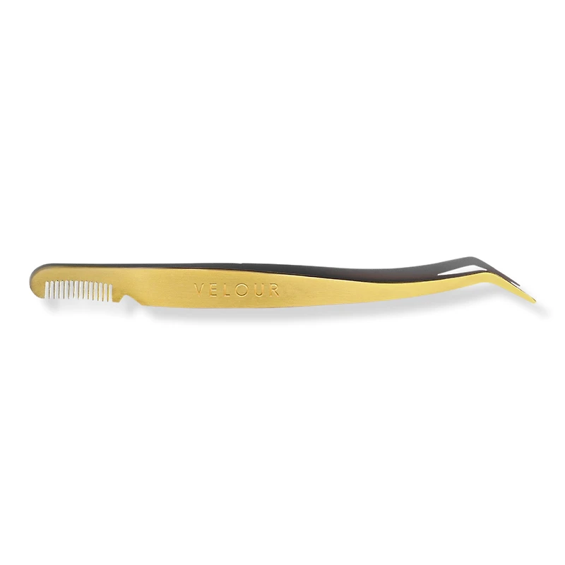 TOO EASY LASH APPLICATOR. Benefits: Lash application is even easier than you think with Velour's dual-ended tool. Features: Curved lash tweezer on one end and a comb on the other end for finishing touches. :
