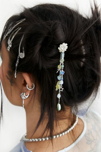Unleash your inner pixie with this Fairy Hair Pin! It features a flowered design crafted with an array of beads and stones, including butterflies and stars for a truly magical look. Whether you're a fairy godmother-in-training, or just want to add a touch of whimsy to your look, this enchanting piece will make sure your style is always straight out of a storybook!