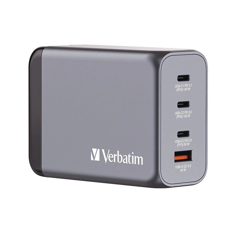 Verbatim 32205 240 Watts 4-Port GaN Wall Charger - Black/GrayVerbatim 32205 240 Watts 4-Port GaN Wall Charger - Black/GrayVerbatim 32205 240 Watts 4-Port GaN Wall Charger - Black/Gray
