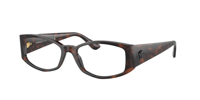 Versace ve3343 eyeglasses seamlessly integrate high fashion with impeccable optical functionality. The irregular shape of these frames adds a touch of uniqueness and sophistication, while the polished havana finish gives them a timeless appeal. Crafted from durable acetate, these glasses are as sturdy as they are stylish. These eyewear pieces showcase the expertise and attention to detail that have made versace a global fashion leader for over 40 years.