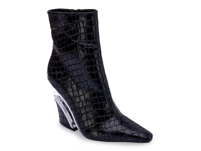 Add oodles of style to your sassy look with the Via bootie from Ninety Union. This croc-embossed bootie showcases sleek lucite and metallic details to elevate its stylish look and also integrates a lightly cushioned footbed to offer long-lasting comfort.