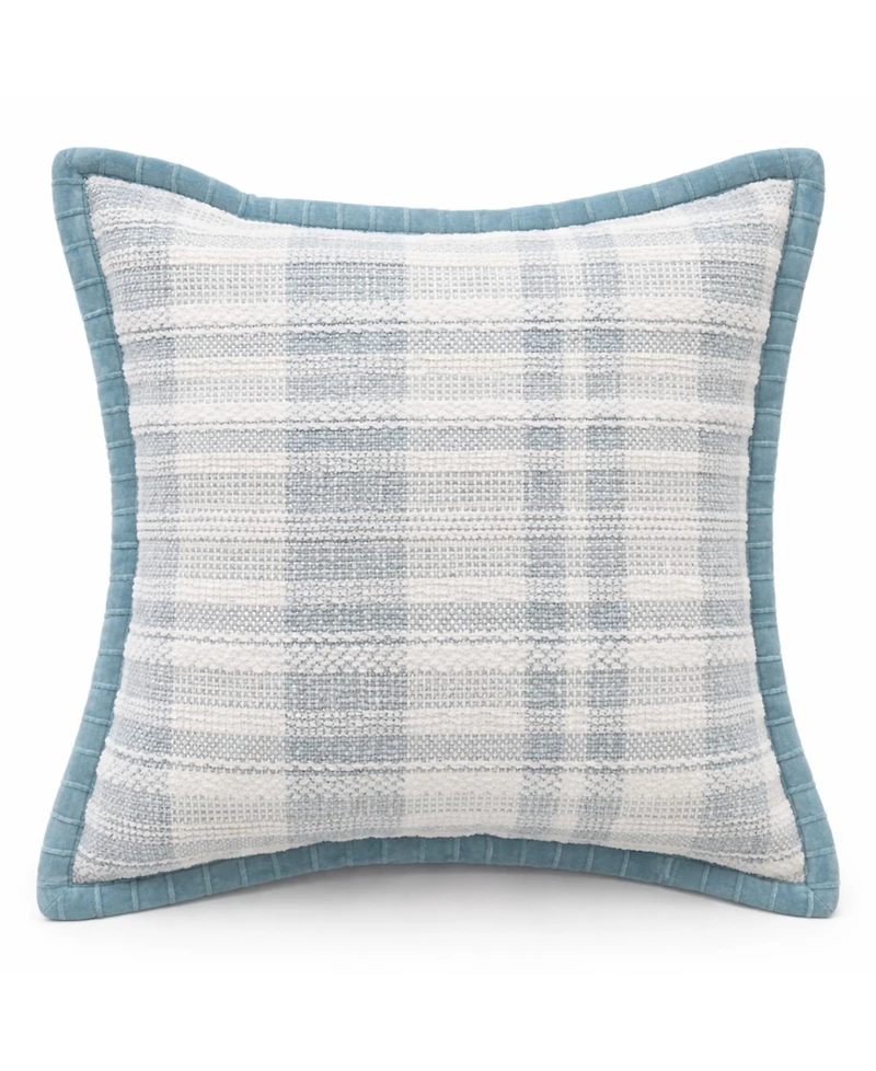 Vibhsa Soft Plaid Blue Textured Velvet Flange Decorative Pillow, 20" x