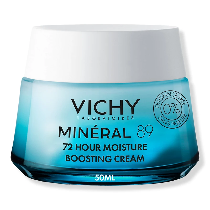 MINERAL 89 FRAG FREE MSTR 50ML 1.69OZ. Benefits: 72-hour long-lasting hydration. Strengthens skins moisture barrier. Skin feels hydrated, soothed & nourished. Lightweight, fast-absorbing texture. Suitable for all skin types. Dermatologist, allergy, and sensitive skin tested for safety. Key Ingredients: Hyaluronic Acid: Hydrates and visibly plumps skin. Vichy Volcanic Water: Strengthens and repairs the skin moisture barrier and protects from factors like pollution. Vitamins B3 & E: Helps restore skin radiance. Squalane: Helps the skin retain moisture. Formulated Without: Fragrance. Parabens.
