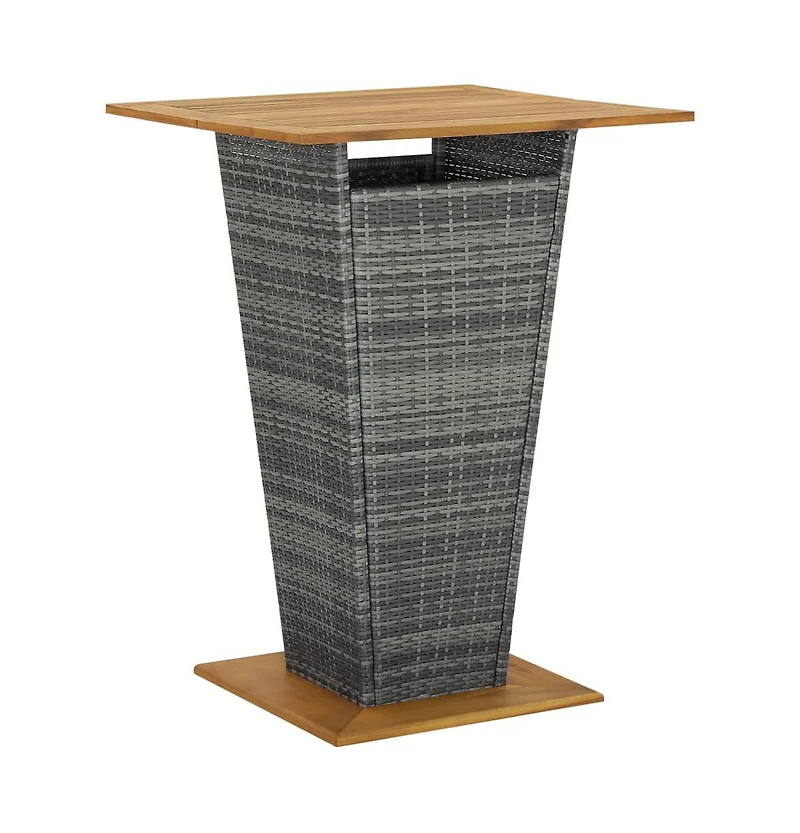 vidaXL Bar Table Gray 31.5"x31.5"x43.3" Poly Rattan and Solid Acacia Wood