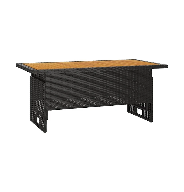 vidaXL Patio Table Black 39.4"x19.7"x16.9"/24.8" Solid Wood Acacia&Poly Rattan