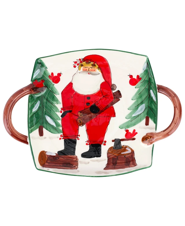 Vietri Lastra Holiday Green Figural Handled Square Platter