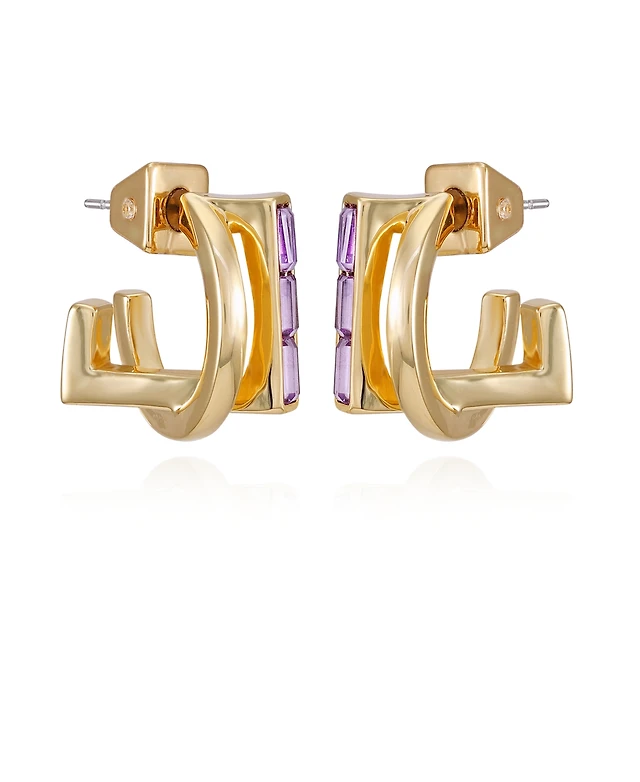 Vince Camuto Gold-Tone Rectangular Glass Stone Dangle Huggie Hoop Earrings