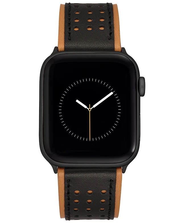 kate spade new york Women's Black Leather Band for Apple Watch, 38, 40, 41mm and 42, 44, 45, 49mm