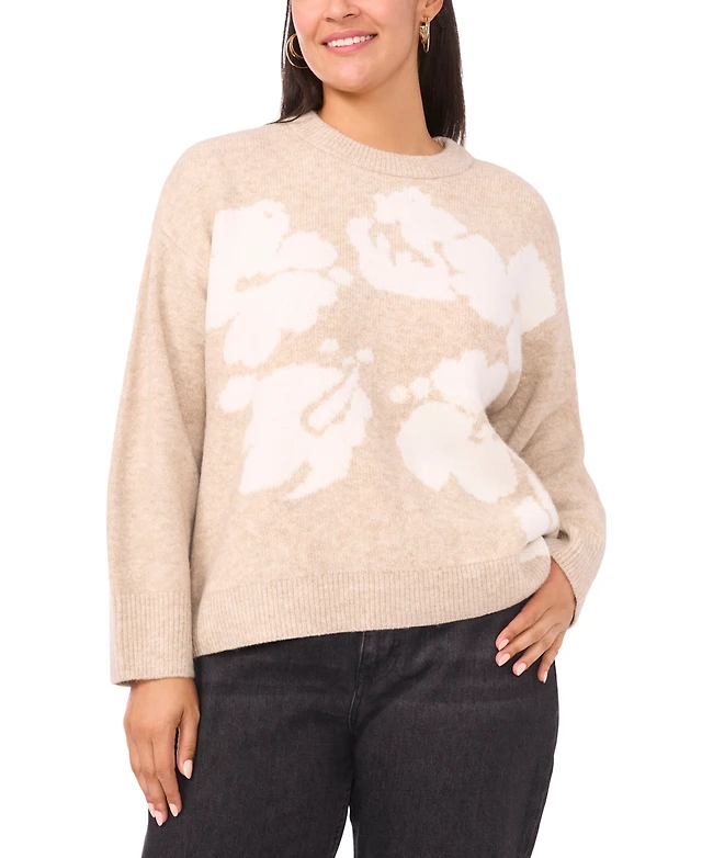 Vince Camuto Plus Flower Motif Crewneck Sweater