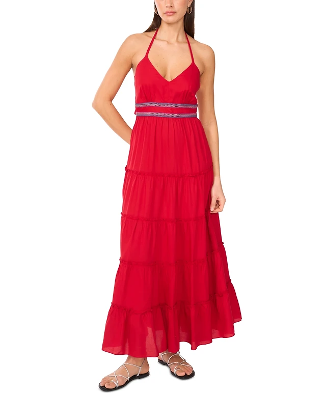 Vince Camuto Women's Crochet-Trim Tiered Maxi Dress