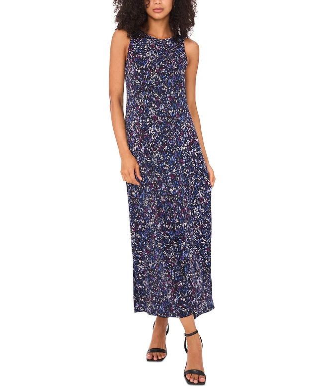 Vince Camuto Women's Challis Square-Neck Smocked-Back Sleeveless Maxi Dress