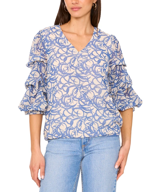 Vince Camuto Women's Printed V-Neck Lantern-Sleeve Top