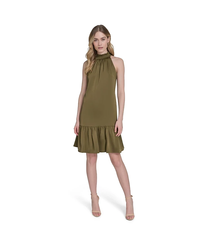 Vince Camuto Women's Satin Ruffled A-Line Halter Dress