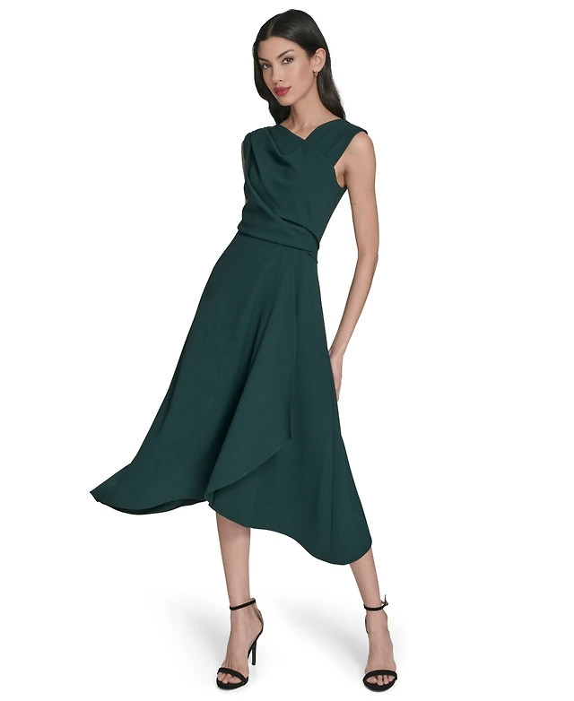Vince Camuto Women's Scuba Crepe Asymmetric Crewneck Midi Dress