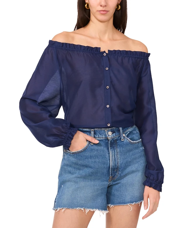 Vince Camuto Women's Solid-Color Off-the-Shoulder Button Blouse