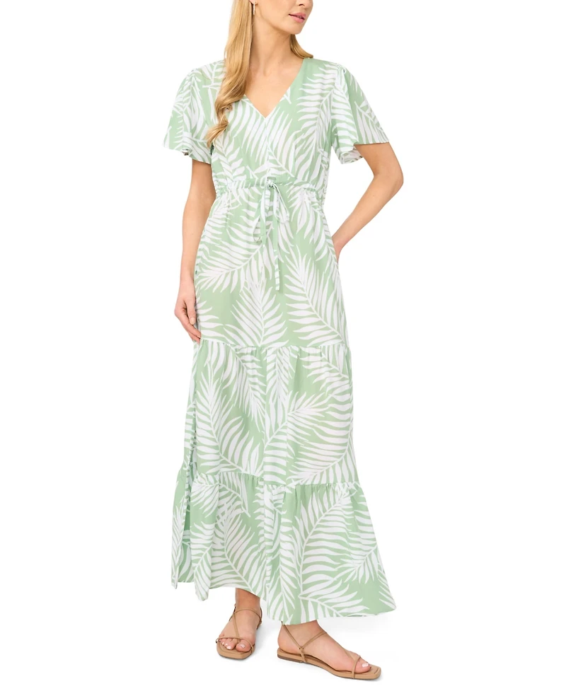 Effortless charm defines this Vince Camuto tiered maxi dress with a flattering V-neck and pull-on style for easy dressing. Flutter-sleeves and a tie waist create a soft structure that enhances shape with gentle definition. Flowing tiers add movement, bringing refined femininity to every occasion. About The Brand: Vince Camuto is a globally renowned brand that embodies European styling. Detailed craftsmanship across the line embraces current trends while maintaining a classic aesthetic.