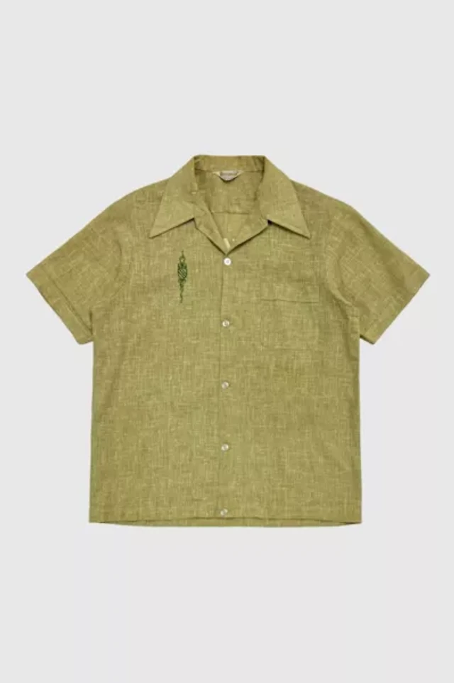 Vintage 1960's Olympian Cropped Flocked Letter Embroidered Bowling Shirt