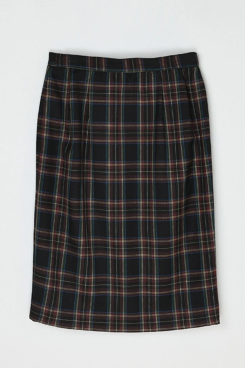 Vintage 90s Black & Dark Red Plaid Midi Skirt
