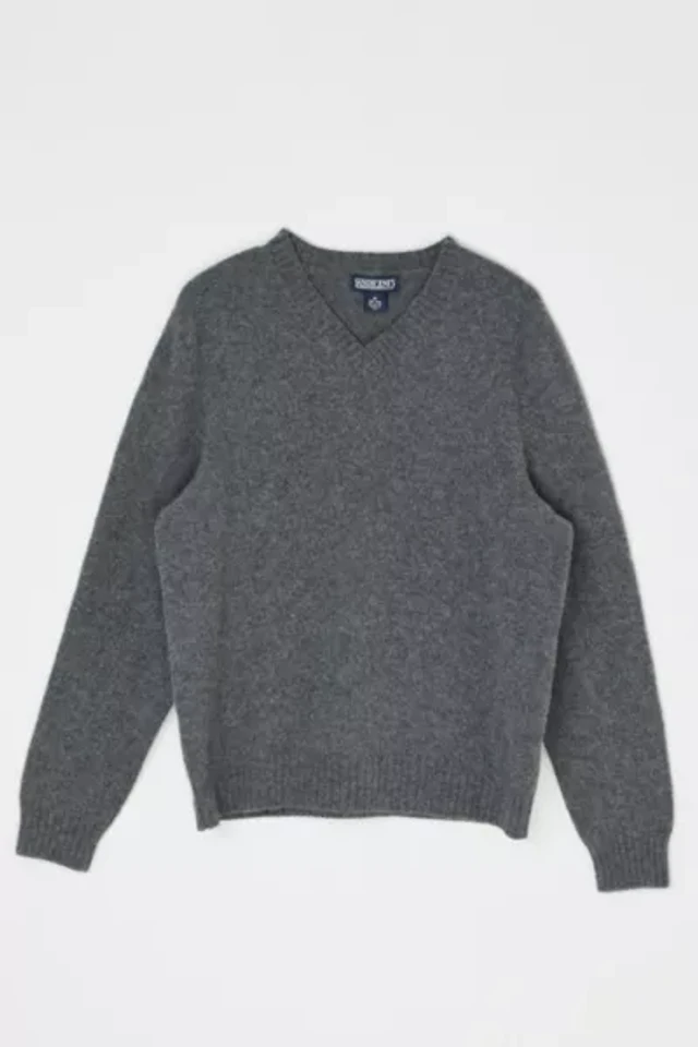 Vintage 90s Dark Grey V-Neck Lambswool Sweater