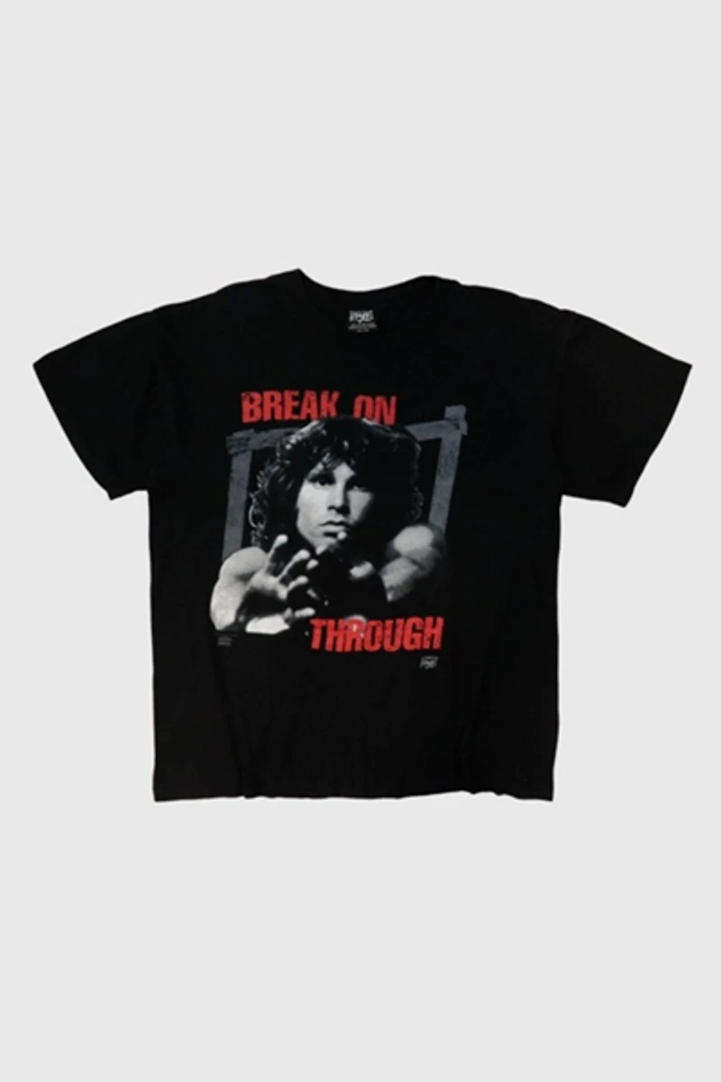 - - This t-shirt features front and back graphics with the iconic Break On Through text and photograph. The item shows light general wear consistent with age, with no major flaws visible. Please see photos for details on condition. We do our best to show all flaws of any garment through the pictures. Please check pictures for condition.