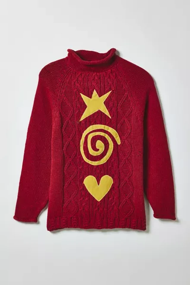 Vintage By Magg’s Rags Star Swirl Heart Patched Graphic Sweater