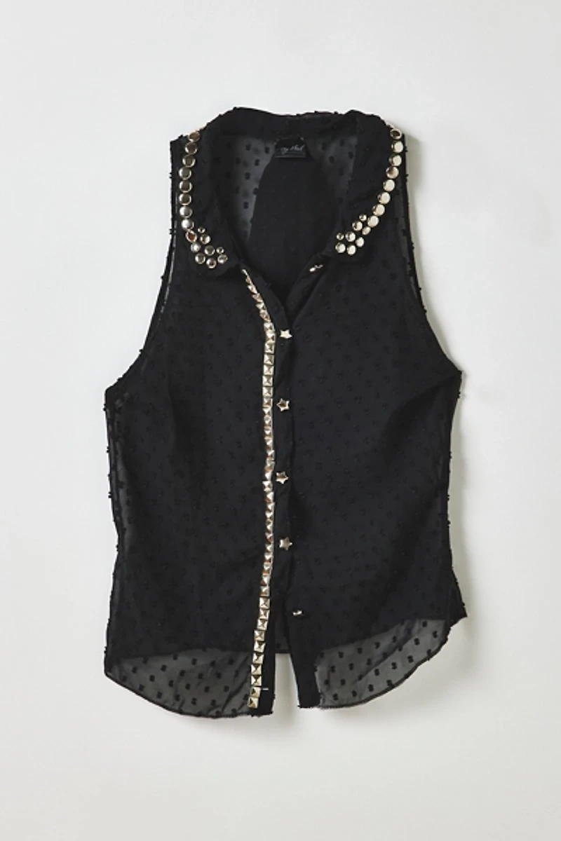 Vintage By My Grrl Sheer Swiss Dot Studded Sleeveless Blouse