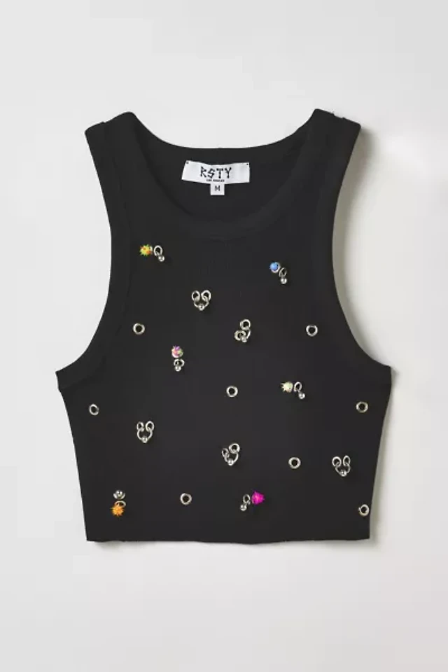 Vintage By RSTY Black Colorful Pierced Grommet Cropped Tank Top