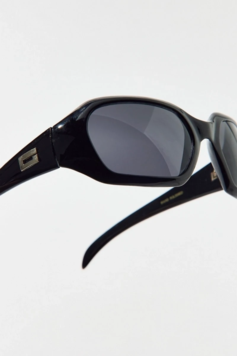 Vintage rounded rectangular sunglasses sourced by Urban Outfitters and brought to you in their original form. Retro sunglasses in shiny black plastic with tinted lenses that come to you as pictured here.