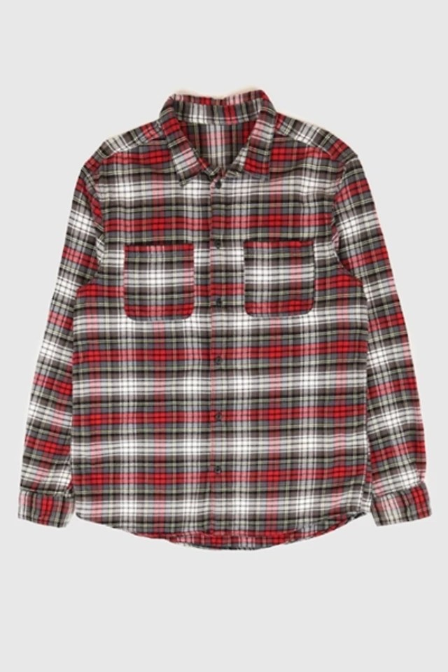 Vintage Grey Plaid Flannel Button-Down Shirt