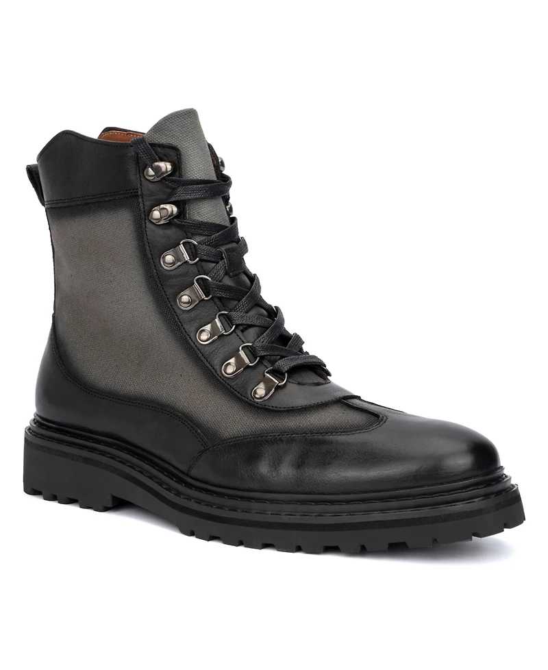 The Bassel Combat boot has a lot of personality and uniqueness. Durable yet stylish, the contrasting colors, lace- up design and metal eyelets make this a favorite amongst modern man.