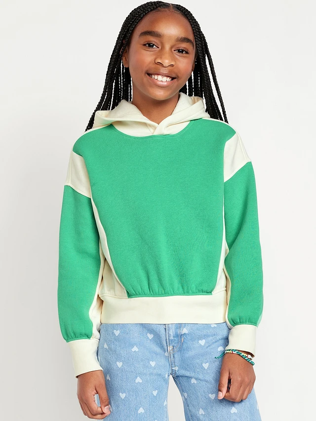 Vintage Oversized Color-Block Pullover Hoodie for Girls