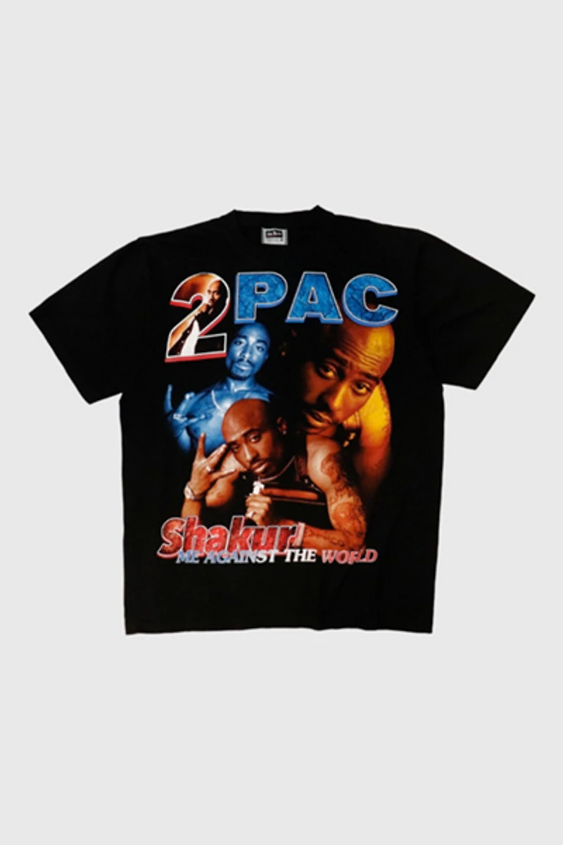 - - This shirt features colorful graphic prints of Tupac on the front and back. There is some mild wear with a small faded mark visible on the sleeve. Overall, it remains in good worn condition, perfect for collectors and fans alike. We do our best to show all flaws of any garment through the pictures. Please check pictures for condition.
