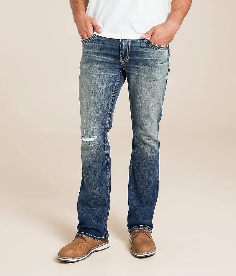 Limited Collection Slim fit bootcut jean Performance stretch fabric for a higher level of flexibility Low rise, 17" bottom opening Destruction details Zip fly