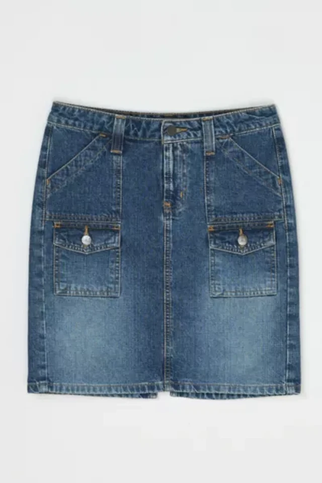 Ed Hardy Heart Dagger Light Wash Denim Cargo Mini Skirt