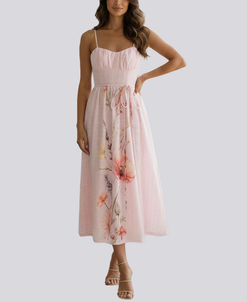Romantic detailing elevates feminine style in this floral-print eyelet corset dress by Violet Weekend, featuring a delicate fabric that improves breathability and adds textured visual interest. A fitted bodice with a midi-length skirt creates a flattering silhouette, while the tiered construction enhances movement.