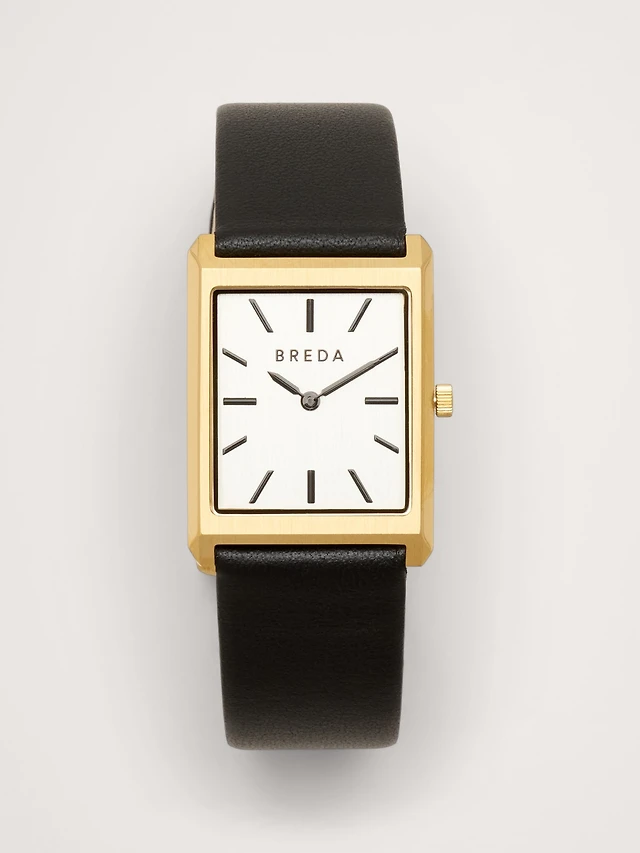 Men's Breda Virgil Analog Watch with Gold-Tone Dial and Black Leather Strap (Model: 1736c)