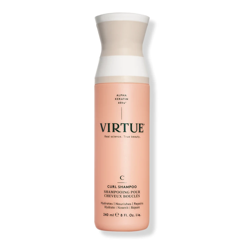 CURL SHAMPOO 8FLOZ. Benefits: Hydrates hair. Hair is strengthened, nourished, and more manageable. Features: For Hair Concerns: Brittle, dry hair with breakage. For Hair Types:. WAVY - Fine/Medium/Thick. CURLY - Fine/Medium/Thick. COILS - Fine/Medium/Thick. COARSE. Key Ingredients: All Virtue products contain Alpha Keratin 60ku, a healing protein that's identical to the keratin that makes up 90% of hair. It repaves and refills keratin, repairing damaged hair with each use..