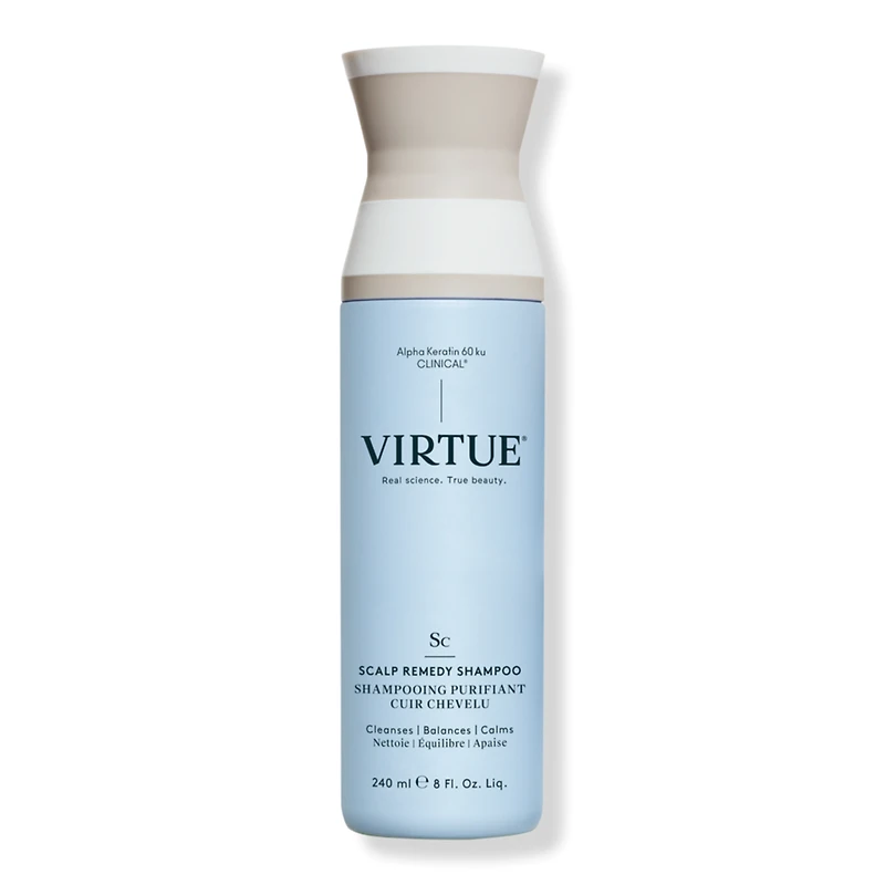 SCALP REMEDY SHAMPOO. Benefits: Nourishes the scalp while refreshing hair. Repairs from roots to ends. Gently exfoliates & rebalances the scalp. Features: Hair Concerns: Flaky/Dry Scalp, Oily Scalp, Scalp Build Up. For Hair Types:. Straight - Fine/Medium/Thick. Wavy - Fine/Medium/Thick. Curly - Fine/Medium/Thick. Coarse. ALL VIRTUE LABS PRODUCTS ARE FREE OF SULFATES, PARABENS, PHTHALATES, SYNTHETIC COLORS AND DYES. GLUTEN FREE.. Key Ingredients: All Virtue products contain Alpha Keratin 60ku, a healing protein that's identical to the keratin that makes up 90% of hair. It repaves and refills keratin, repairing damaged hair with each use.. White Willow Bark Extract: A natural alternative to salicylic acid that gently exfoliates dead skin cells from the scalp. Ziziphus Joazeiro Bark Extract: Known to comfort and balance the scalp.