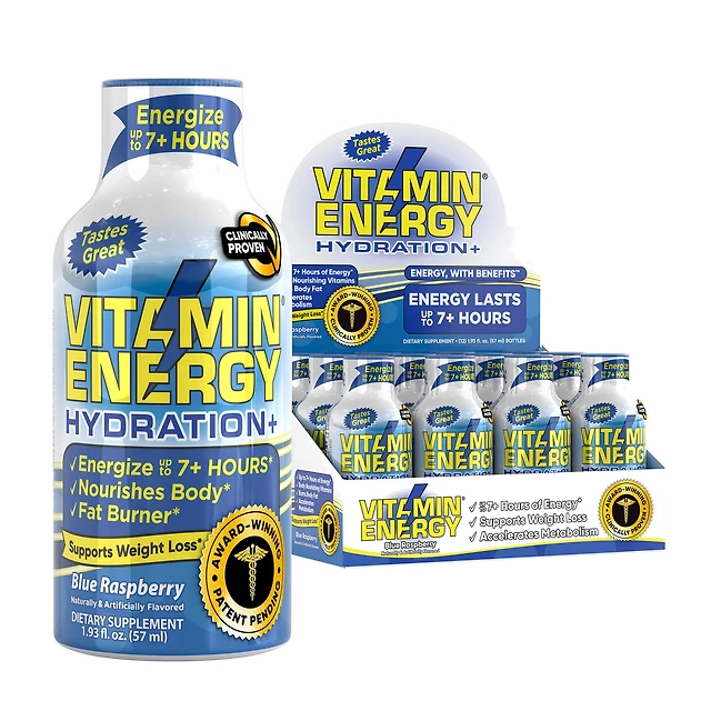 Vitamin Energy Sport+ Liquid Supplement - Blue Raspberry 1.93Oz. (12 Bottles) Zero Sugar