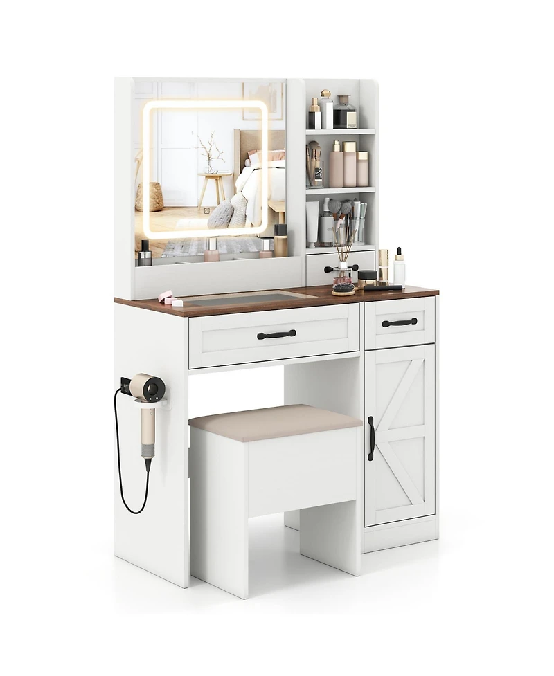Volenca Farmhouse Vanity Desk with Lighted Mirror, Makeup Dressing Table