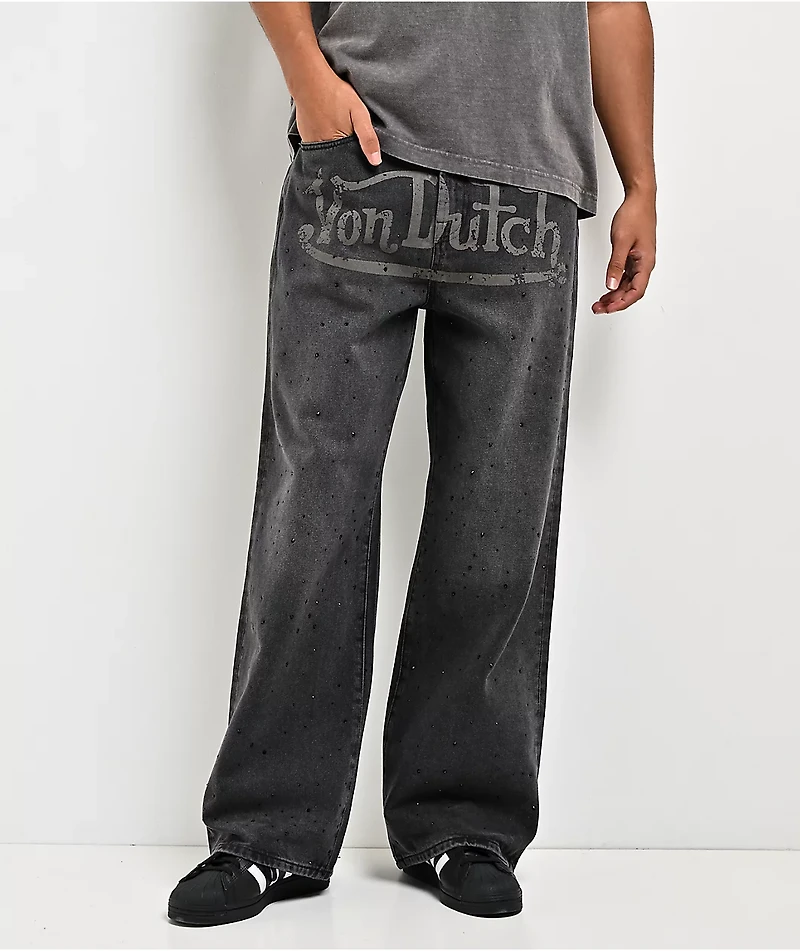 Von Dutch x Broken Promises Night Sky Rhinestone Black Wash Straight Leg Jeans
