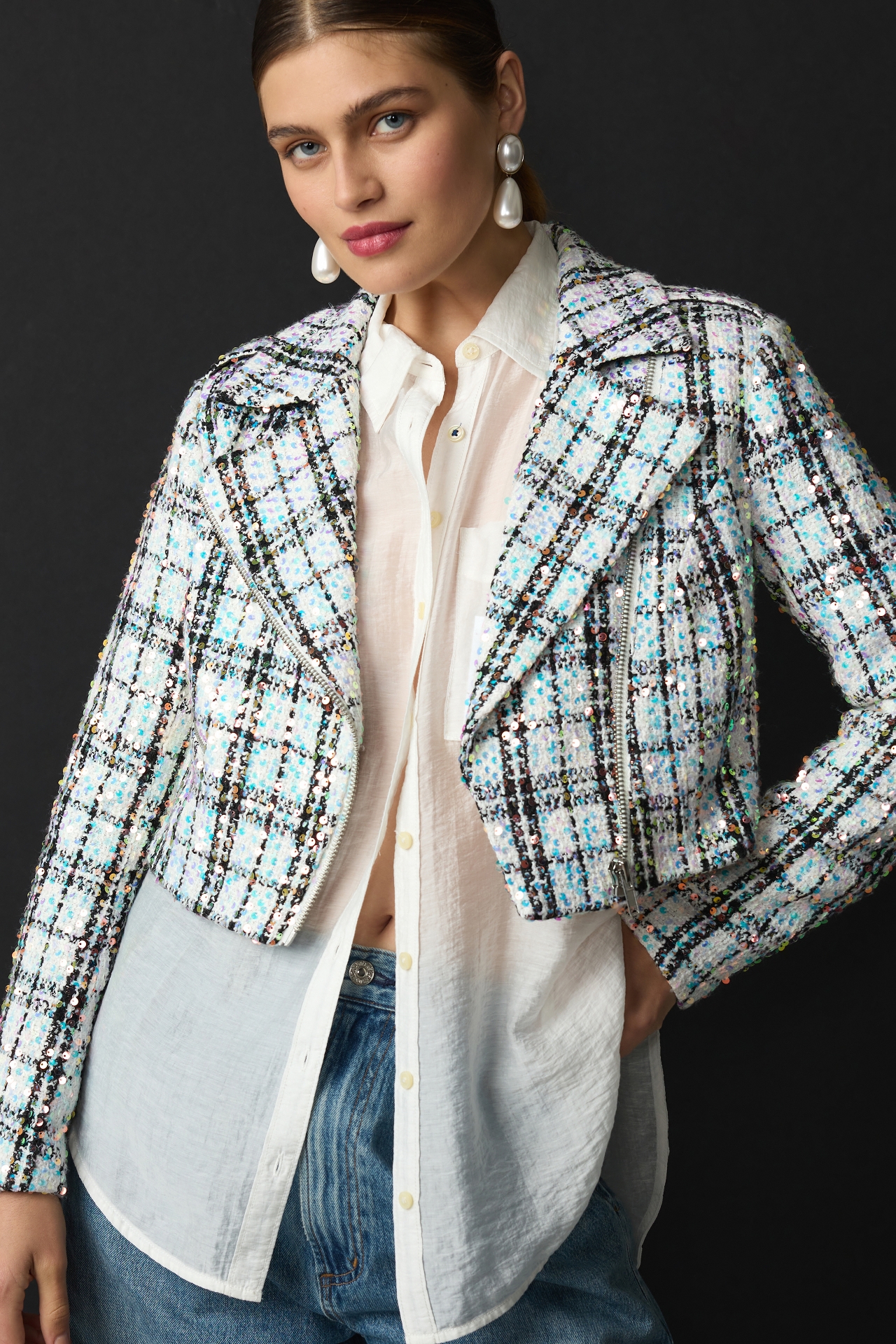Walter Baker Renae Sequin Tweed Moto Jacket