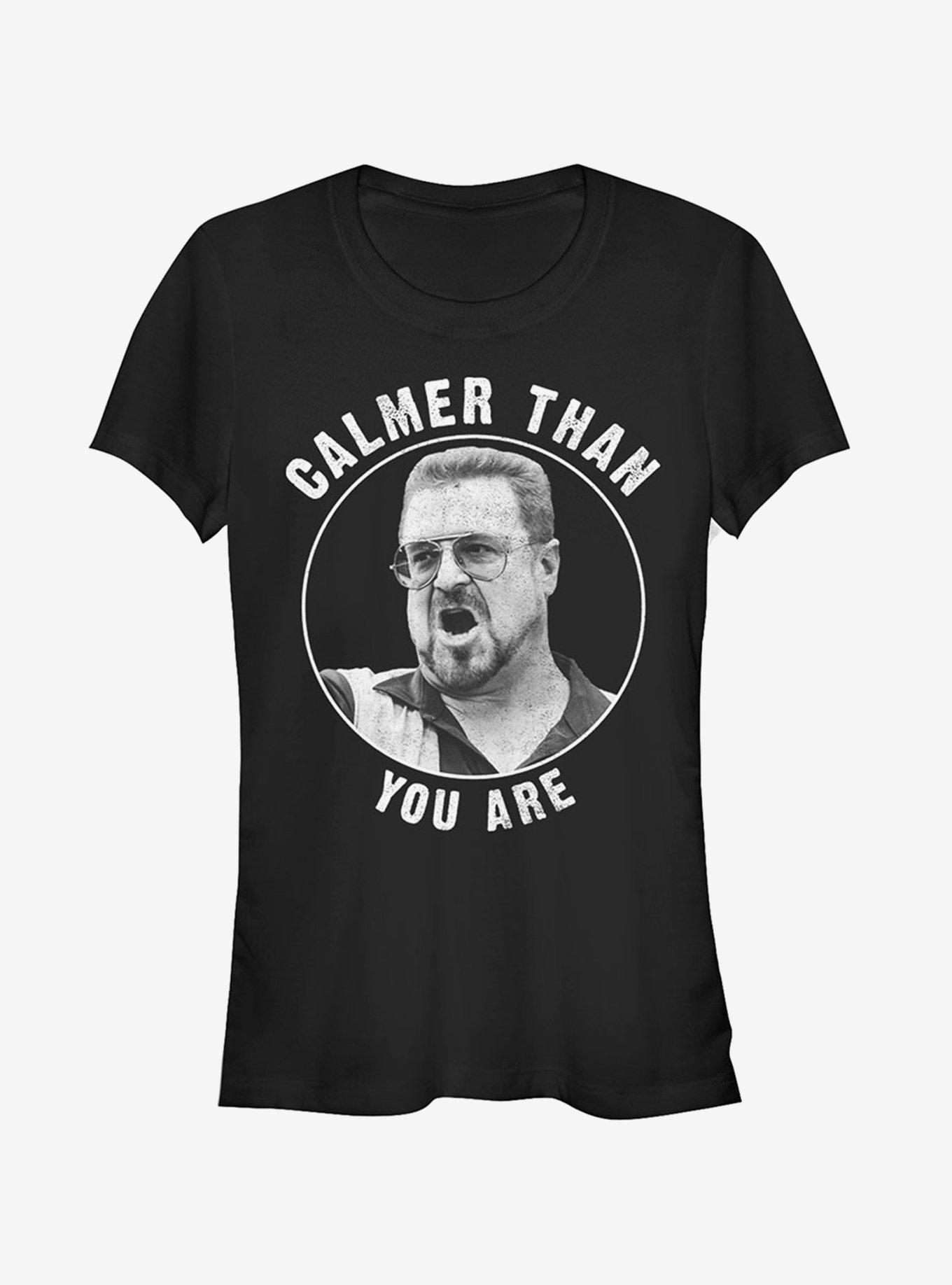 Walter might have an anger problem but he's always got The Dude's back so celebrate him with The Big Lebowski Walter Calmer Than You T-Shirt. The Dude's bowling buddy, Walter, is encircled by "Calmer Than You" on this funny Big Lebowski tee.