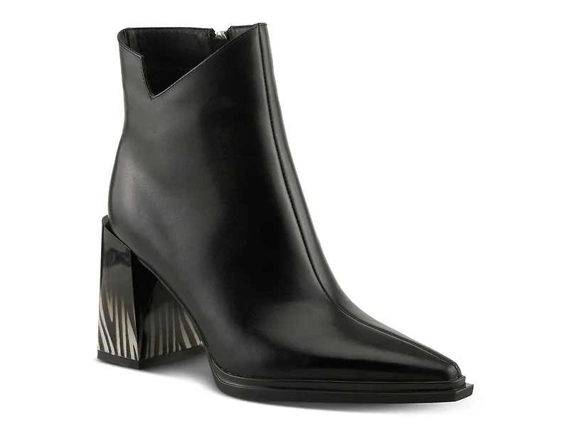 Bring an artsy touch to your look with the Wanderer bootie from Azura. The printed block heel, asymmetrical shaft design, and pointed toe combine for a sleek highlight.