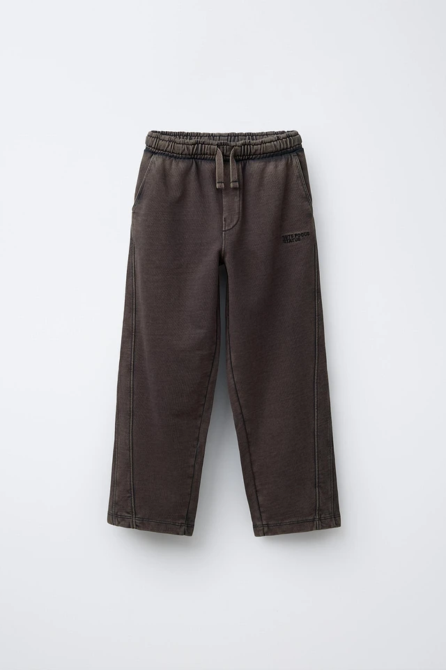 WASHED-EFFECT STRAIGHT-LEG PLUSH PANTS