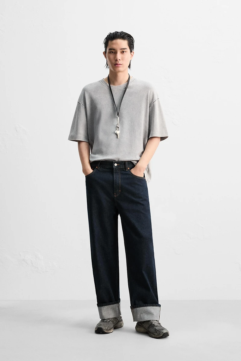 Relaxed fit T-shirt made of interlock cotton fabric with elasticity. Round neck and short sleeves. Washed effect.
