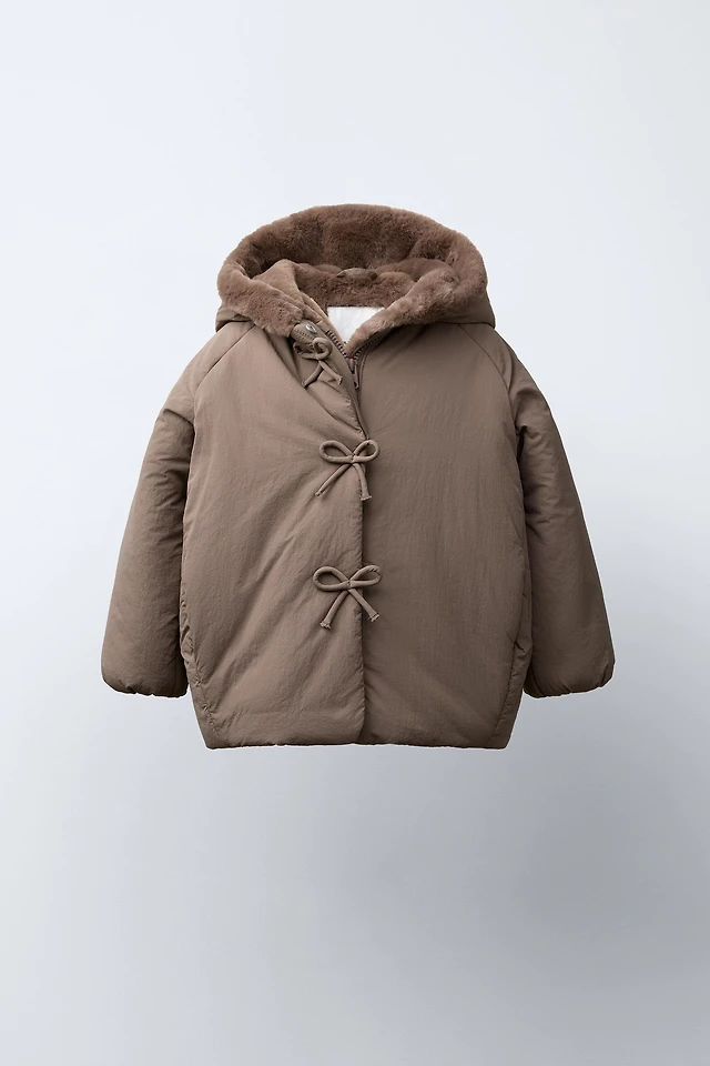 WATER REPELLENT PUFFER COAT WITH BOWS