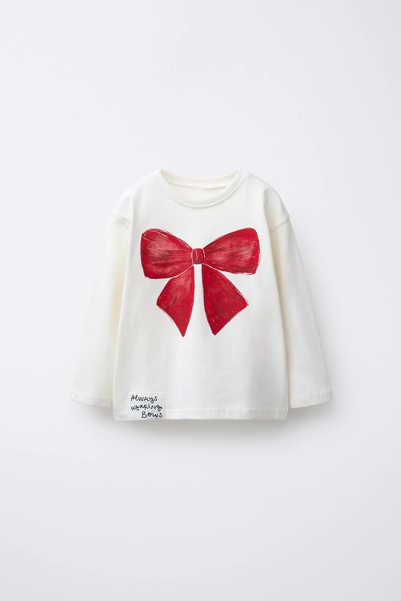 WATERCOLOR PRINT T-SHIRT WITH BOW