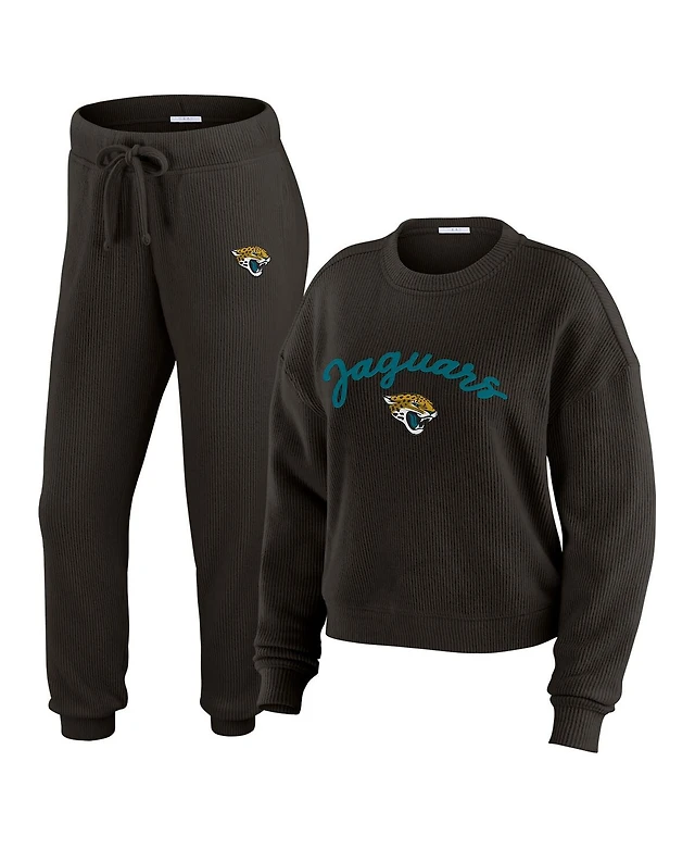 Wear by Erin Andrews Women's 2-Piece Cream Jacksonville Jaguars Plus Size Knitted Tri-Blend Long Sleeve T-Shirt and Pants Lounge Set